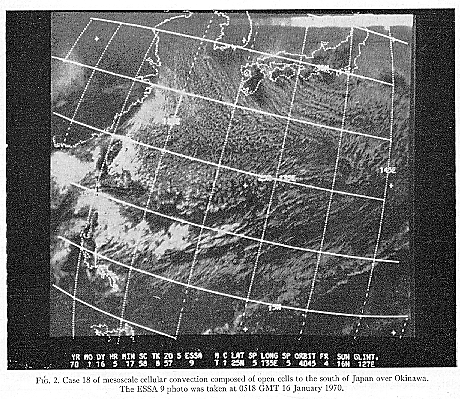 蜂巢式的中小尺度對流胞。這種情形通常在寒潮暴發時,發生於較溫暖 的海面上。