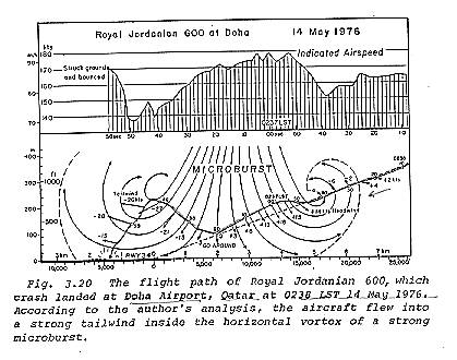 所以,微下爆氣流是飛航安全的最大威脅,特別是發生在機場上方的特別危險。 這是1976年在卡達Doba機場發生空難的過程。