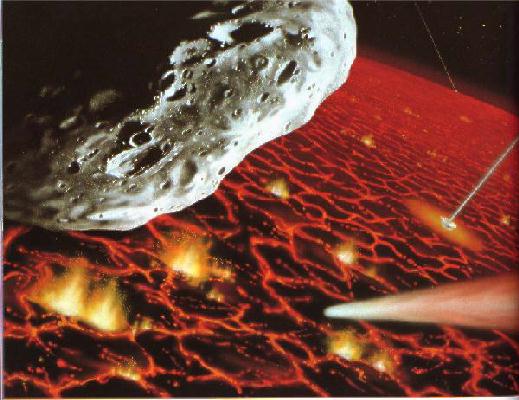 現在大家都同意地球當初是由許多小行星,因萬有引力 相吸引碰撞在一起而形成的。因為劇烈碰撞,產生高溫 ,而使地球成為融熔狀態,使原來岩石中的水汽、氧、 二氧化碳、氮等釋放出來。由於地球夠大,其重力足以 將這些氣體吸引住,不致因逸入太空而消失。