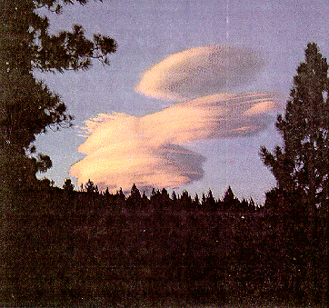 圓形的山所引起的山岳波會導致像飛碟一樣的莢狀雲(Lenticular cloud)。