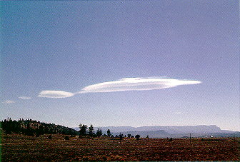 像這樣的莢狀雲(Lenticular cloud),在台灣北部比較常看見,通常發生 於颱風在菲律賓,而台灣盛行東風時。莢狀雲是山岳波的典型特徵。