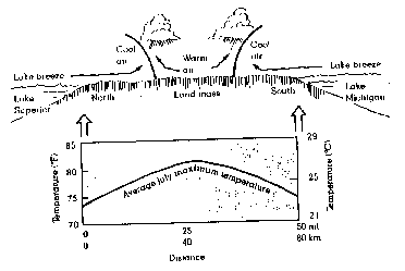 由於在海風前沿在輻合作用,空氣被抬升而在雲雨的產生。反之,在夜晚, 陸風前沿也是比較容易發生雲雨的地方。