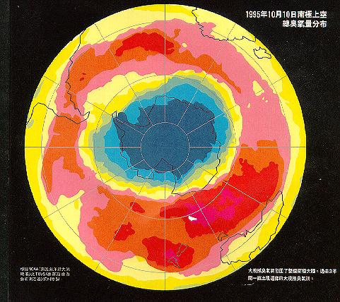 到了1995年十月,南半球總臭氧量明顯減少,特別是 在高緯度地區。例如南極洲上空的臭氧總量已經減少 到130 DU,大約只有1979年的六成,而且臭氧總量大 幅減少的地區比南極洲還大,其面積是歐洲大陸的二 倍!(取材自「牛頓雜誌」160期,56-57頁,1996年 9月號)