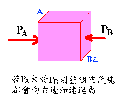 有氣壓梯度就會有氣壓梯度力使空氣向氣壓較小的一邊加速運動,特別是 在水平方向。