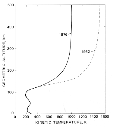 雖然層次的分佈是歷久不變的,但是氣溫卻是會年年改變 。特別是熱氣層的溫度更是會隨太陽活動力(solar activity)的強弱而發生極大的變動,太陽活動力的強弱 會反應在太陽黑子的多少,太陽黑子多時太陽活力強,否 則反之。熱氣層的溫度可以由太陽黑子少時的400 K ,暴 增至太陽黑子多時的1400 K到1800 K。